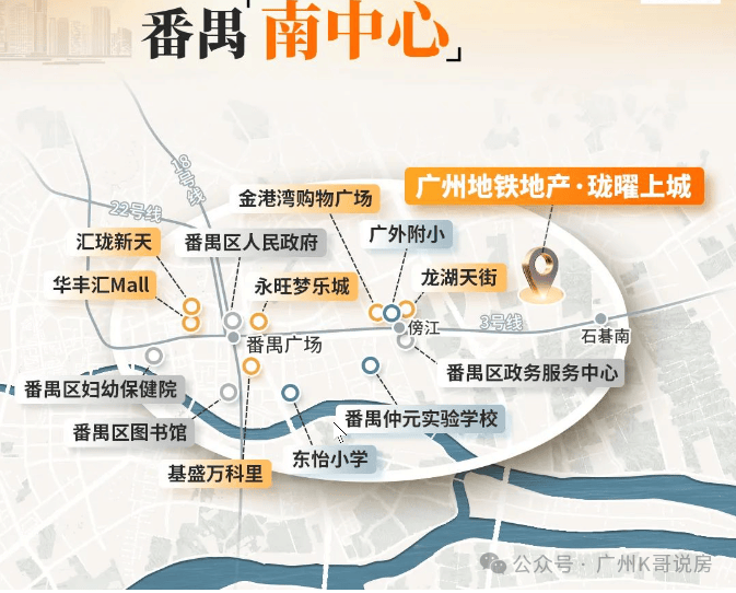 距项目2站的番禺广场,番禺区府所在地,集合番禺的行政、交通、教育、医疗、文化中心,是与北万博平齐的番禺南中心。
