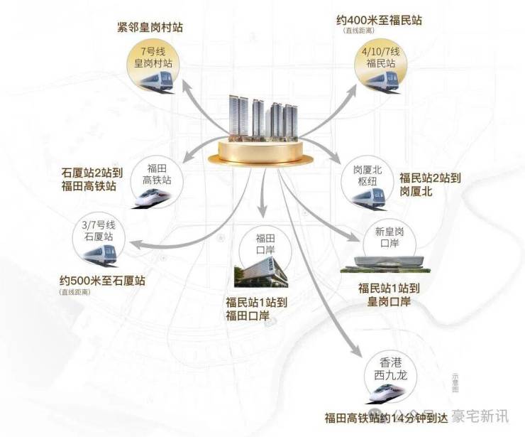 ·1站双口岸 ·2站福田高铁站 ·2站岗厦北枢纽 ·双地铁口 四地铁线