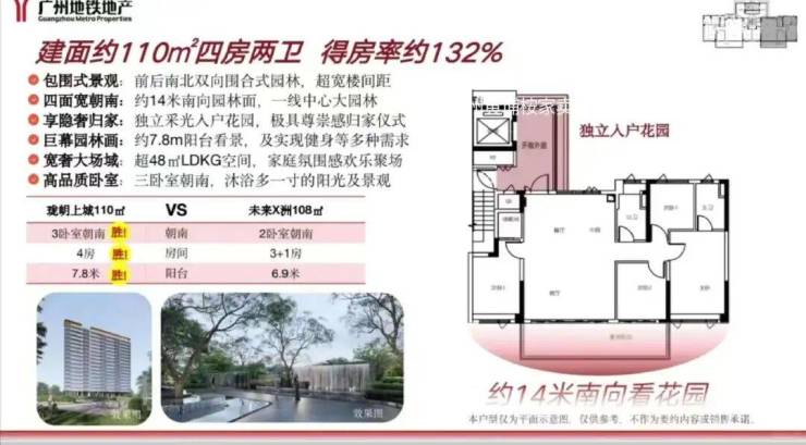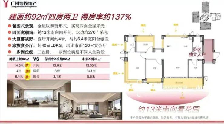 同时还将推出约 110 - 125㎡低密板楼产品,如约 125㎡户型有 4 房 3 卫双主套。