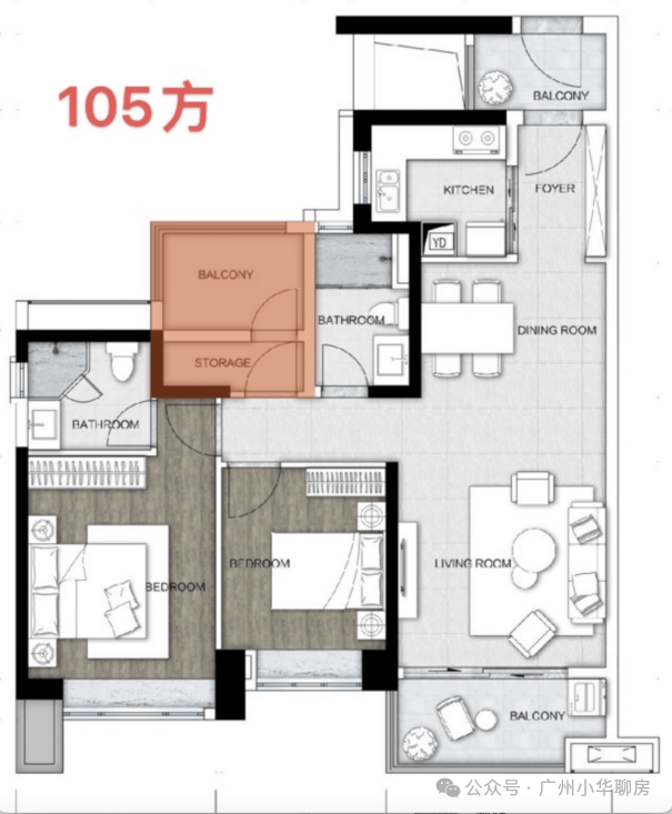 🌟品质生活:105㎡3空间两厅两卫豪华主卧套间,私享自在生活双次卧阔绰尺度,家庭同享居住品质餐客厅一体+宽景阳台,奢适空间品味