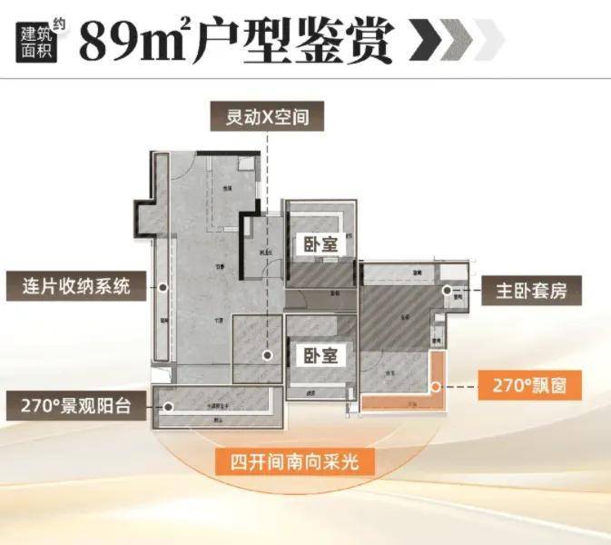 其中 89㎡左右的三房户型是刚需主力,做到了四开间朝南,客厅开间约 5.2 米,采光充足,主卧带独立卫浴和飘窗,总价大致在 490-550 万之间,很适合在海珠、越秀上班的年轻家庭。