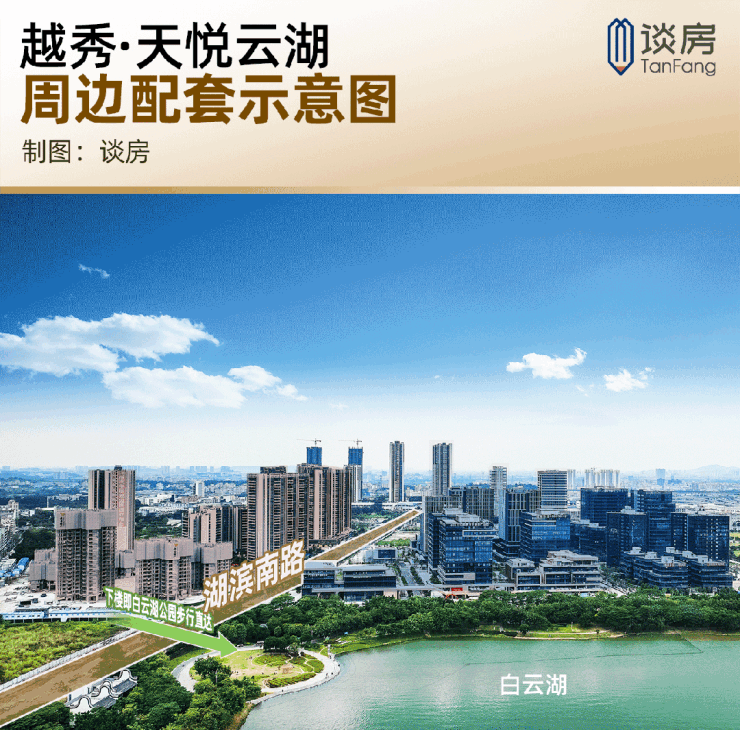 地缘上,白云湖数字科技城位于中心五区,临近中心城区,与珠江新城直线距离15公里,兼得新城发展,又不远离市中心,衔接资源。