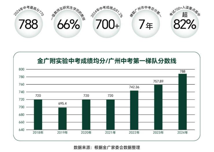 白云广附云湖学校师资亦是势力雄厚,近年来,白云广附中考成绩一直名列广州前茅,以白云广附核心学校金广附为例——继广州中考成绩五连冠后,2023年又拿下了广州中考最高分770的好成绩。2023年5月底,广州市招考办公布2023届广州中考自主招生初审名单,入围人数为全市之首。(信息来源:金广家委会)