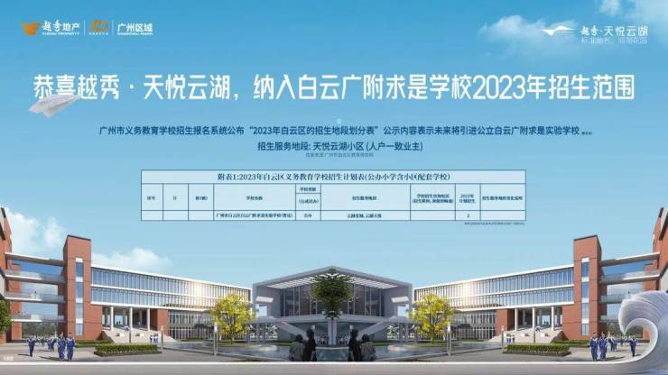天悦云湖对口的九年一贯制“牛校”——白云广附云湖实验学校已经开学,,读书确定性片区无出其右(具体招生信息以教育主管部门最新公布为准)。