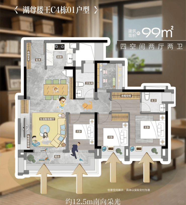 【建面99㎡4房】3室2厅2卫, 南朝向,楼栋分布于C3栋