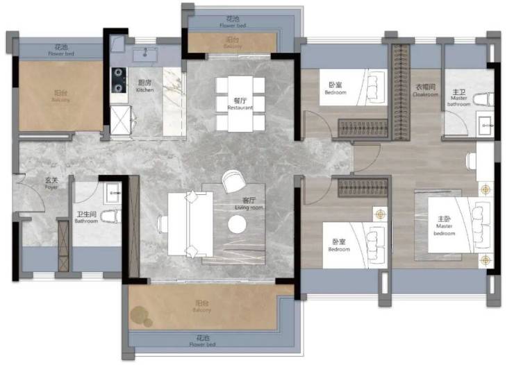【建面116㎡4房】4室2厅2卫, 南朝向,楼栋分布于C2栋