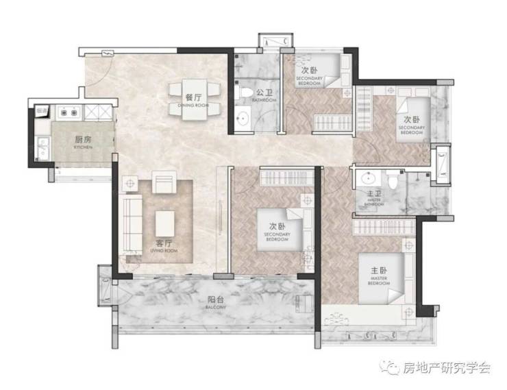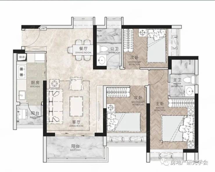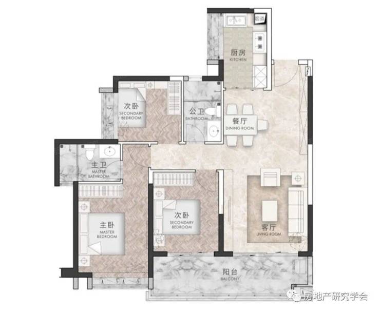 户型特点:户型设计1条过道,过道面积紧凑,空间少不浪费。3室比较适合改善型人群,2卫的设计,解决了抢卫生间的尴尬,同时也保证主人生活私密性。