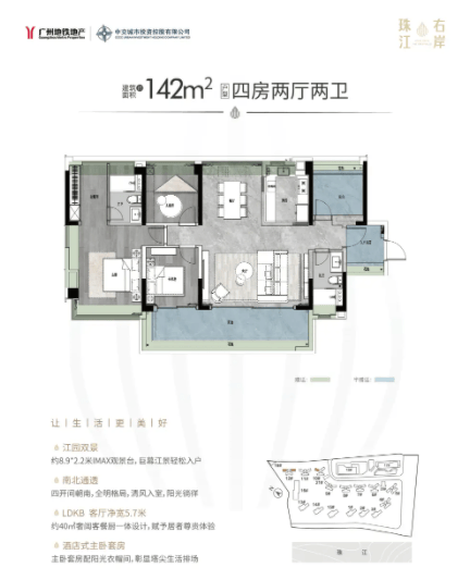 建面约142㎡四室两厅两卫,低楼层房源620万起,空间宽敞,适合人口较多的家庭;
