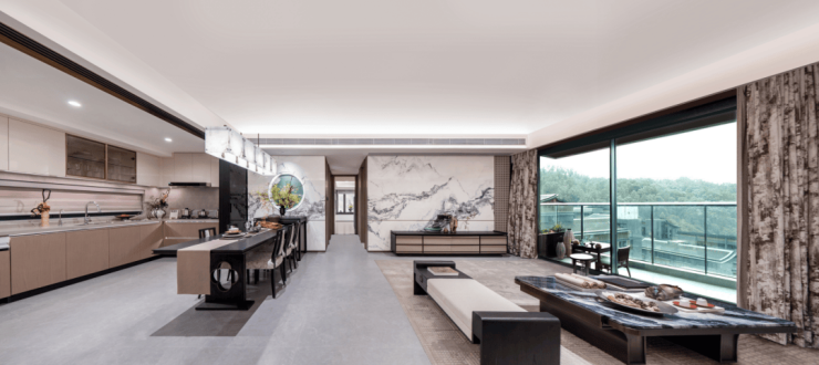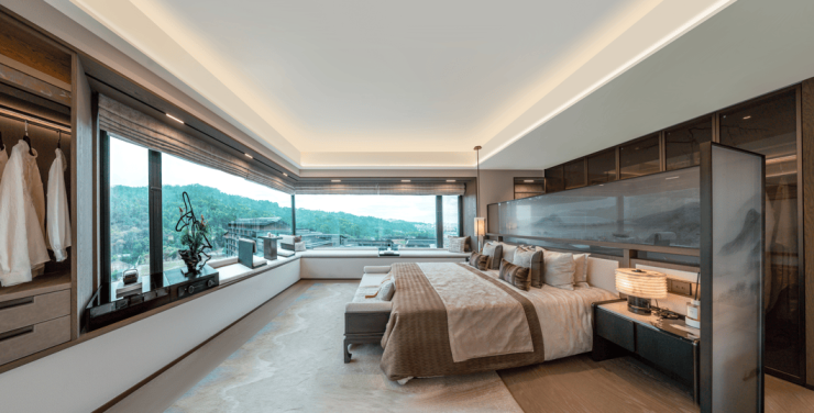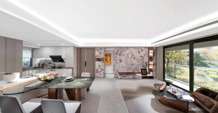 采用公建化立面设计,通过客厅的阔绰观景阳台和房间无柱全景观面飘窗台,视野开阔,实现0遮挡山景入户,与云山亲密接触。