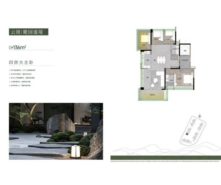 项目园林以“一轴八苑”的布局打造,与云山互为呼应。