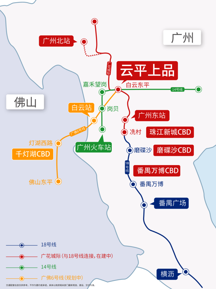 连通广佛城际交通,自白云东平站连接大沥、佛山新城等板块,串联广佛实现同城联动。