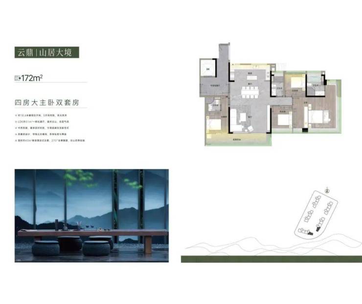 专梯专户山居环幕MAX平层,视野开阔,揽一线云山美景,低密居件环境舒适宜人,仅限319席。