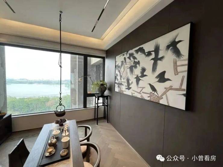 白云湖位于项目的东北角,首先,项目规划的楼栋全部采取一定角度的扭转38°,让湖景更好地分落到不同楼栋和不同户型上。同时,又采取北高南低的布局战略,确保东北面的湖景视野,同时又使得南北楼栋拥有多一小时的采光,通风也更加通畅。