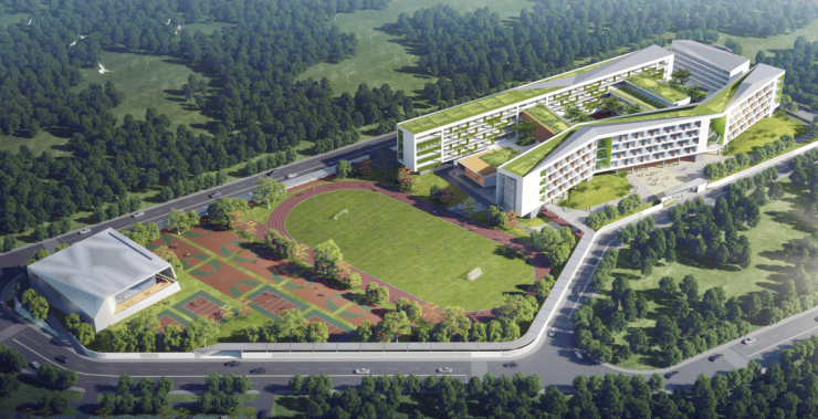 项目自配建9班幼儿园以及54班(30班小学+24班初中)九年一贯制的广东番禺中学实验学校