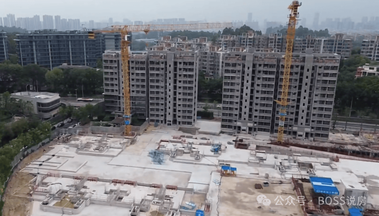 而二期暂未取得预售证,去年5月就说开卖了,大概率是面积冲突和产品调整的原因,目前前排已经封顶