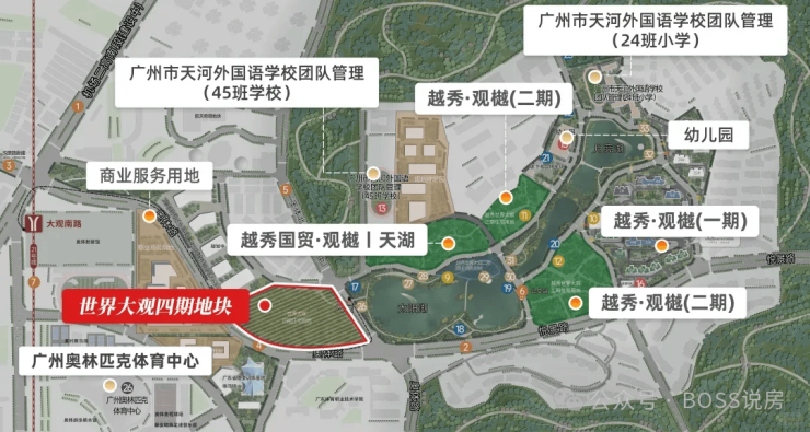 配建 15 班幼儿园、800 方托儿所和 24 班小学,小学引进广州天河外国语教育集团合作办学,预计 2026 年 9 月开学。