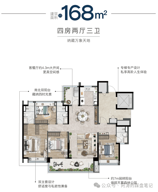 •围合式布局,板楼设计,在实现最大楼间距的同时,互不干扰,私密性强;