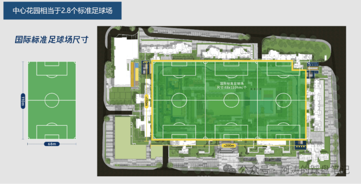 •楼栋间距最大约200米,约等于2.8个国际标准足球场大小;