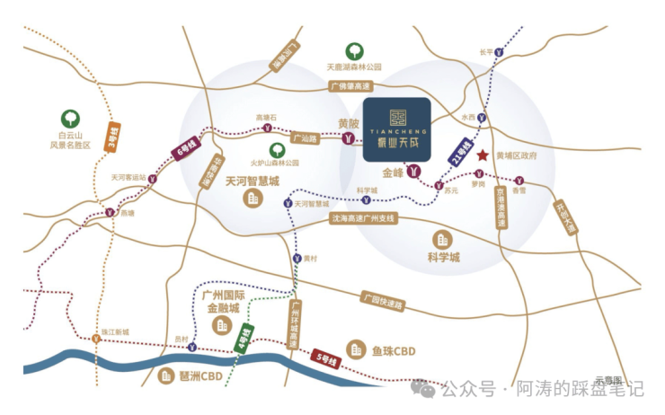 贯通天河、黄埔两大百强区,是广州未来十年发展重点;东段串联长岭居等生态片区,西段衔接天河北、科学城等产业高地,擎领城市发展新引擎。