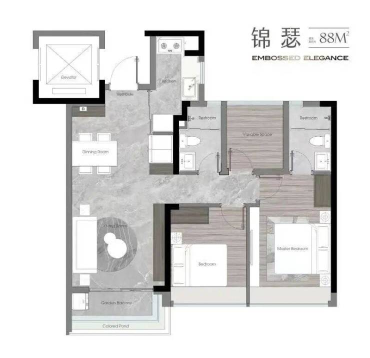 ④建面约88㎡南向臻品户型奢厅入户 尊崇归家