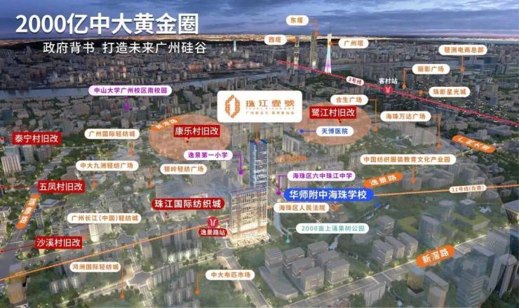 项目坐落于2000亿中大商圈之核,与珠江新城、琶洲两大城市CBD,共筑广州商业黄金三角。