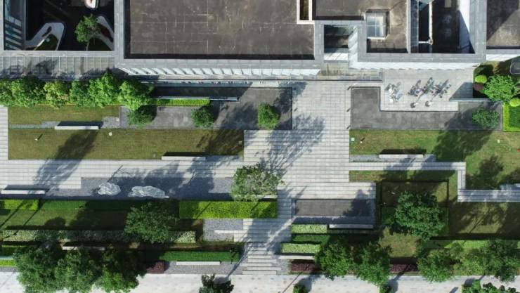 同时,景观设计延续了建筑形态和神韵,开敞与动态的空间布局,形成通透、连续的视觉体验,使项目整体与城市空间环境形成友善呼应,营造出整体而有活力的自然社区。