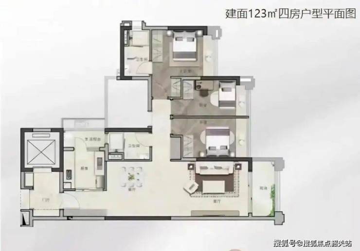 广州城投东园公馆占地面积仅为8470㎡,规划了4栋21-23层住宅,整体容积率高达5.8;其中,南端的4#住宅为回迁房,其余3栋则为商品房,均为塔楼设计。