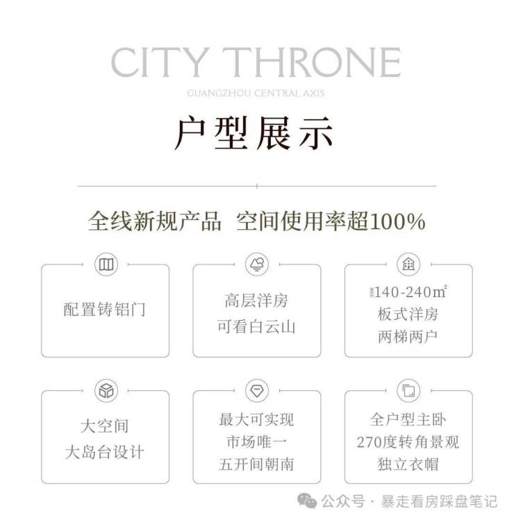 高层西眺白云山,南向看天河中轴;铝板+玻璃幕墙,2300㎡华尔道夫会所(恒温泳池、私宴厅)