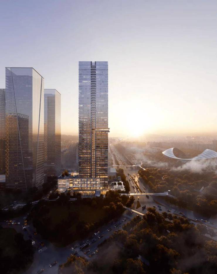 华侨城宝辰,高度约230米,总建面约13.5万㎡,是片区天际线的“制高点”代表,致力于打造集城市中心丰盛配套、公园绿地、精品地铁商业、互联社交空间为一体的区府CBD湾芯公园资产典范。