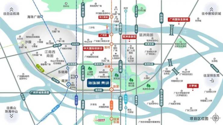 项目择址城市主干道南洲路,家门口便是广州大道,衔接新光快速、广州大道南、广州环城高速3大要道,轻松通达全城,广州地铁2号线、3号线、广佛线3地铁举步即达,4站可达珠江新城,地铁直达白云机场与广州南站,快速链接全国各地。