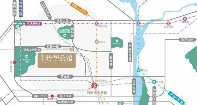 目前距离5号线留仙洞站1.7公里(步行25分钟),另、13号石鼓站约800米(2024年年底开通)、有着“前海一环”之称的15号线打石山站约200米(预计2028年开通)。