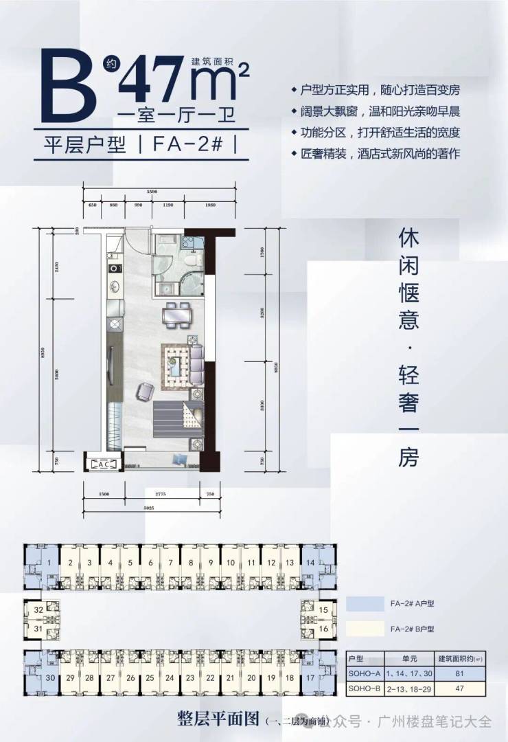SOHO面积:35(一房)、47(一房)、81(两房)