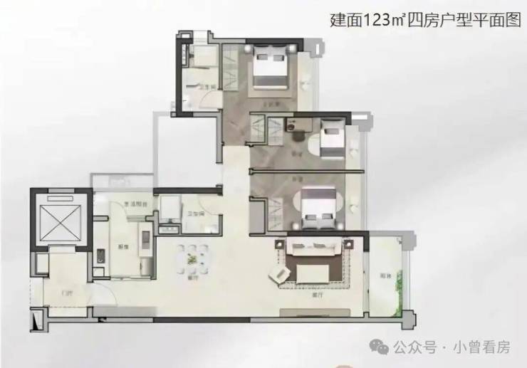 广州城投东园公馆占地面积仅为8470㎡,规划了4栋21-23层住宅,整体容积率高达5.8;其中,南端的4#住宅为回迁房,其余3栋则为商品房,均为塔楼设计。