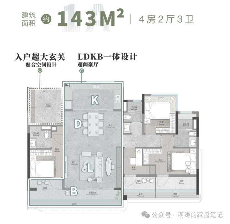 03单位|建面约143㎡︱4空间二厅三卫