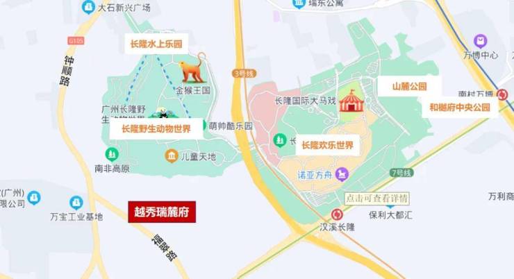 长隆三个主题乐园都在附近,还有飘峰山等山体资源
