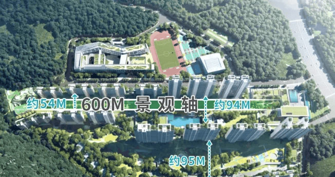 社区内横向园林景观轴长达600米,楼间距超90米。