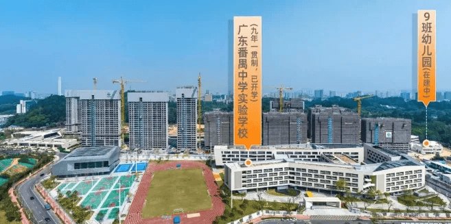 项目自配建9班幼儿园以及54班(30班小学+24班初中)九年一贯制的广东番禺中学实验学校