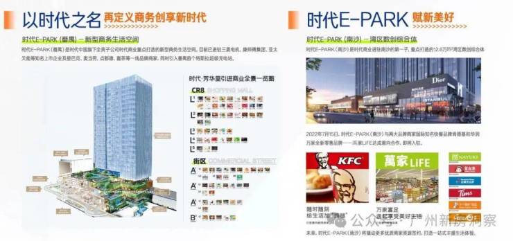 12.6万平时代E-park(南沙)商业综合体即将开业,家门口高端购物体验!地铁2站即达新鸿基庆盛枢纽综合体(在建)和南沙万达广场,中海环宇城、星河cocopark等商业23年已营业,一站式休闲娱乐,尽享品质生活。