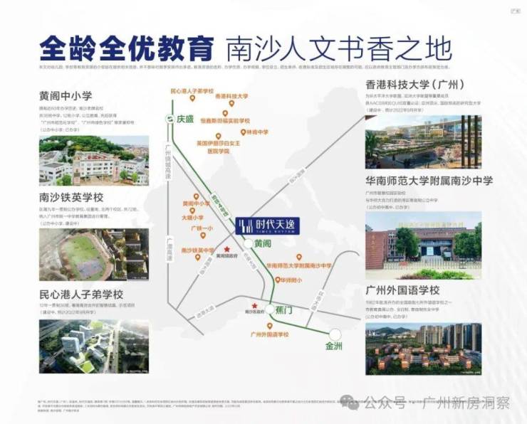 省级重点名校在旁:铁英中学/广铁一小(在建)、华师附属南沙中学、华师附小、黄阁中小学、大塘小学(升级改造36个)、新增54个班九年一贯制学校一所国际名校助力优学:香港科技大学、民心港人子弟学校、广州外国语学校、美国林肯中学、英国伊丽莎白女王医院学校、广州恒鑫斯坦福实验学校