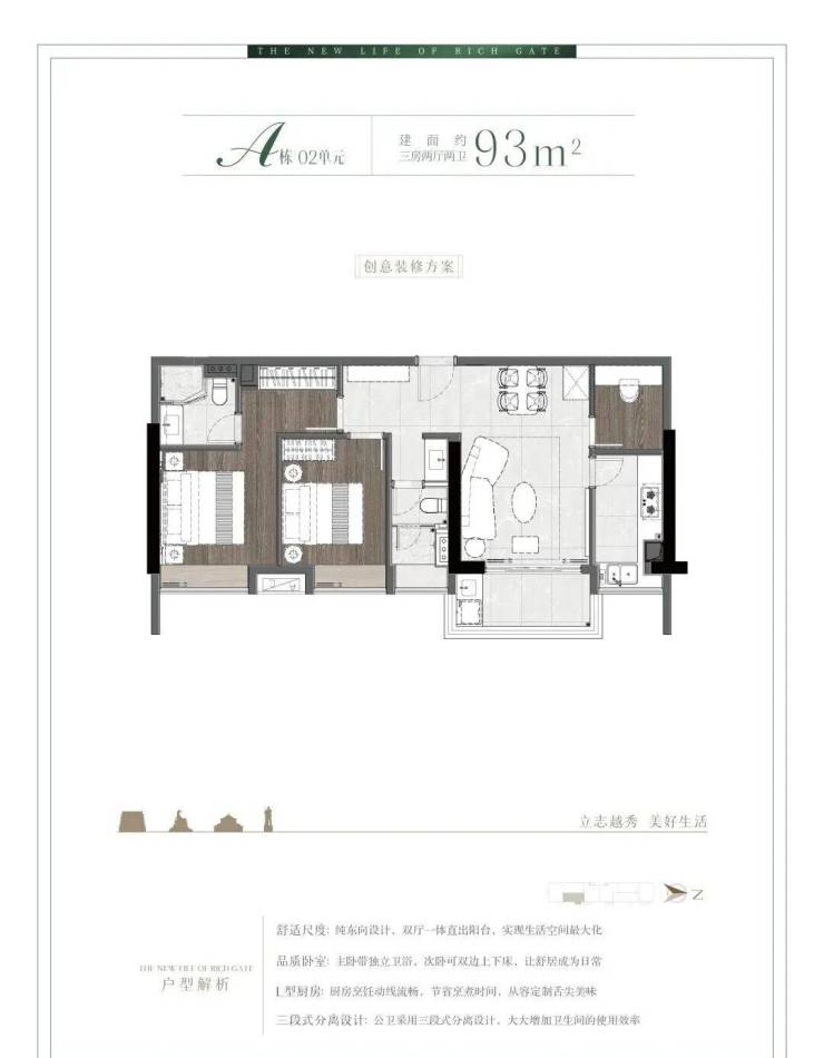 2梯3户全屋对流板式设计,通风采光俱佳,在城芯显得弥足珍贵;LDKG一体化奢阔大方厅、L型飘窗270°巨幕视野等设计,满足家庭成长的改善居住需求,诠释阔绰宽境大家风范。