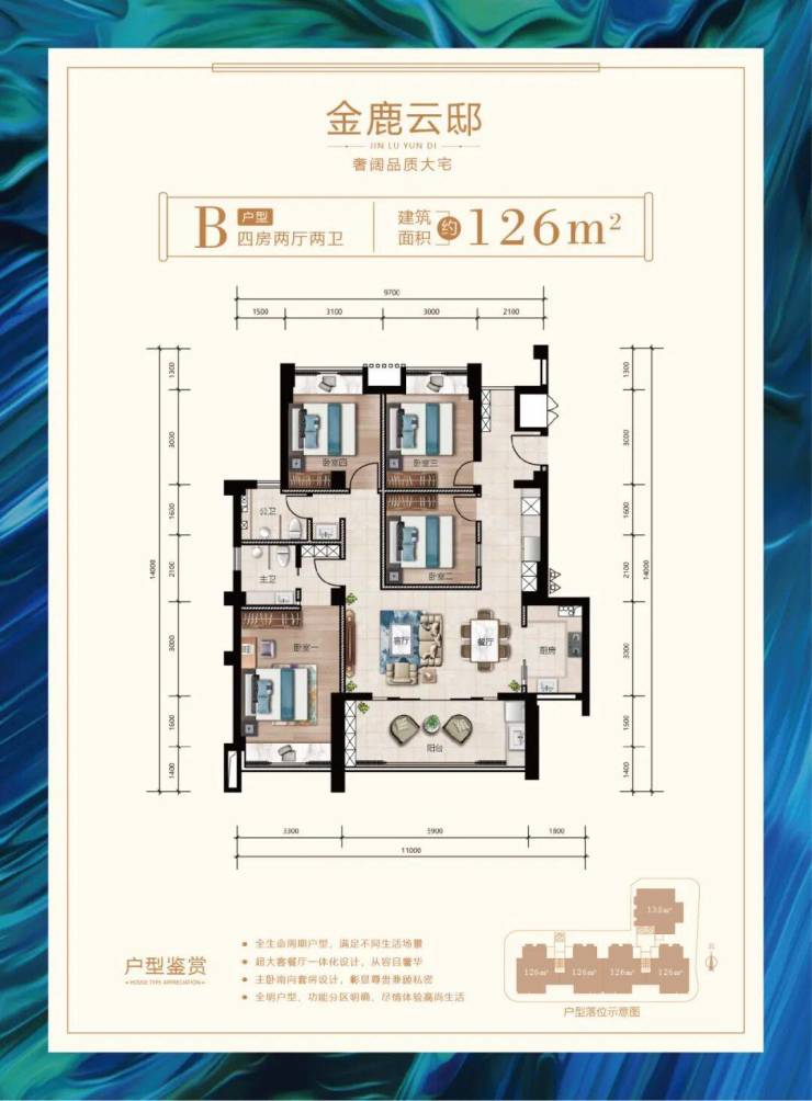 建筑面积约126㎡-133㎡奢阔品质大宅;