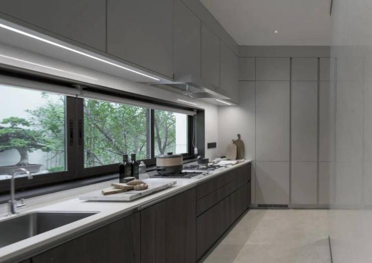 该户型尺度阔绰,顶层还有私家露台花园,平时闲暇时可以欣赏葱葱绿绿的白云山山景;周末也可以约上三五好友举办烧烤聚会;晚上还能在躺椅上抬头观星辰,生活自由且惬意。