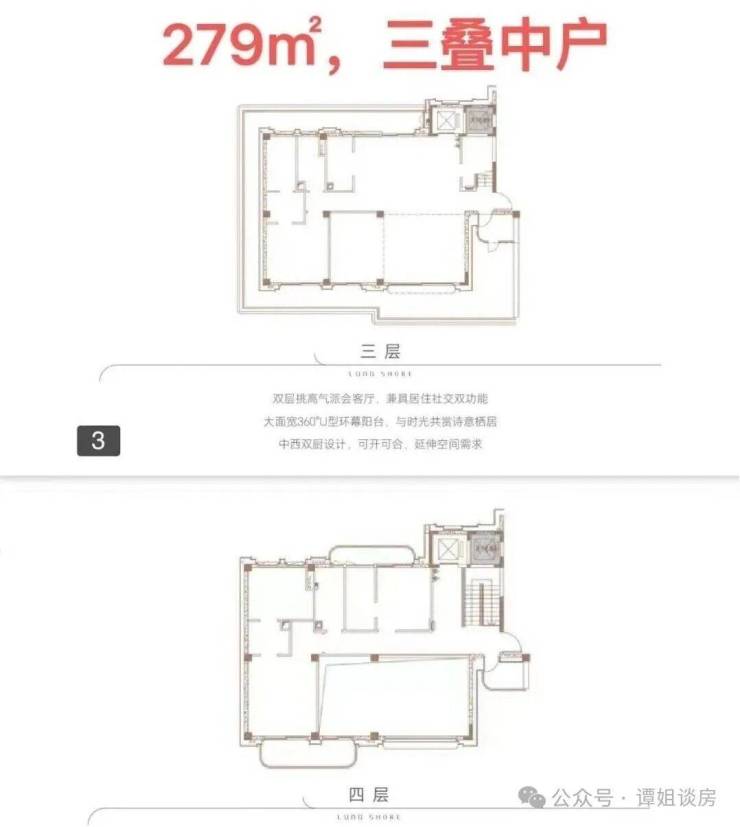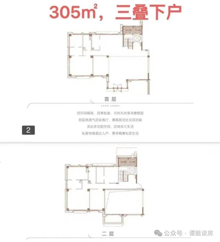 产品户型:两叠(上叠392㎡、下叠437㎡),三叠(上叠 285㎡、中叠279㎡、下叠305㎡)