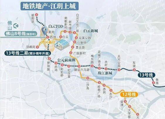 轨道交通:13号线二期凰岗站与社区无缝衔接,西洲站双线换乘,未来更规划直达珠江新城的地下通廊