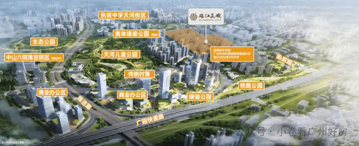 珠江花城占位广州第三科技中轴,毗邻天河智谷。茅岗路一线直达鱼珠CBD,直线距离约6km享三大CBD繁华生活。