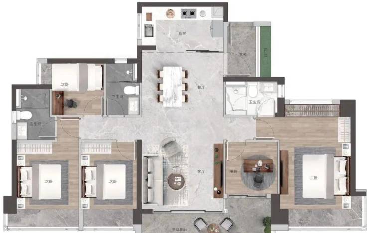 高配双主套三卫,书房可作主卧延展空间,打造总统级套房
