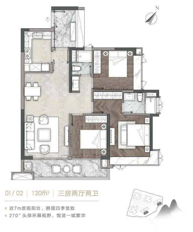 【A1-01/02】 建筑面积约120㎡三房两厅两卫