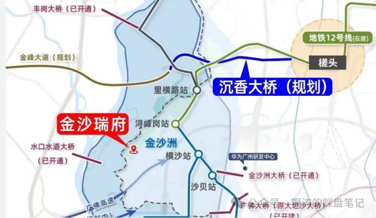 >金沙洲大桥、大坦沙大桥、沉香大桥(规划)、同心桥(在建)、水道口大桥、黄岐大桥、丰岗大桥、碧江大桥(规划中)全面环绕。据了解,沉香大桥预计明年开工建设,未来通车后,从金沙北部到白云新城仅5公里,畅达交通环境,为生活加速。