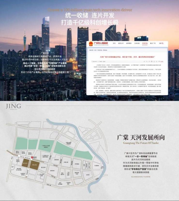 广棠科创城目前已由政府统一收储,连片开发,作为天河主城难得的“零城中村”净地,依托天河优质醇熟资源,已形成“学铁商住产医园”的全维板块,作为链接CBD与CTD双核的枢纽区位,完美实现高效通勤与低密栖居的平衡
