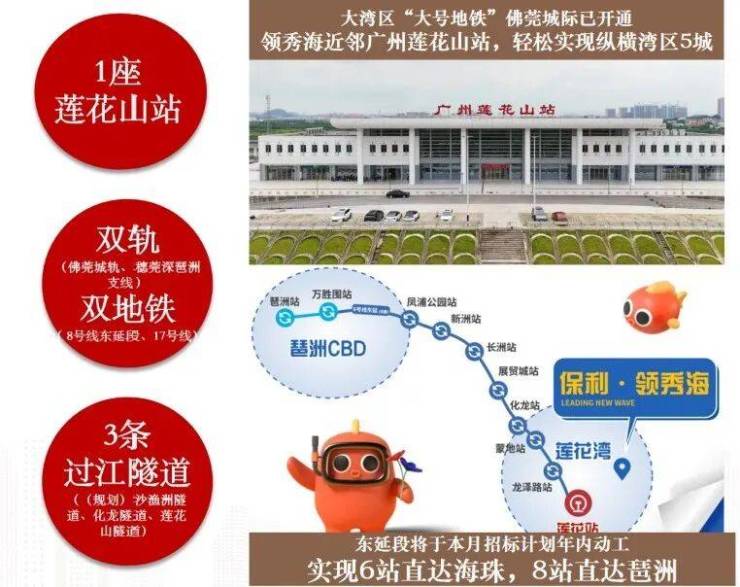 - 公交接驳4号线石碁站,在建8号线东延段(莲花站)约2.8公里(2027年通车)